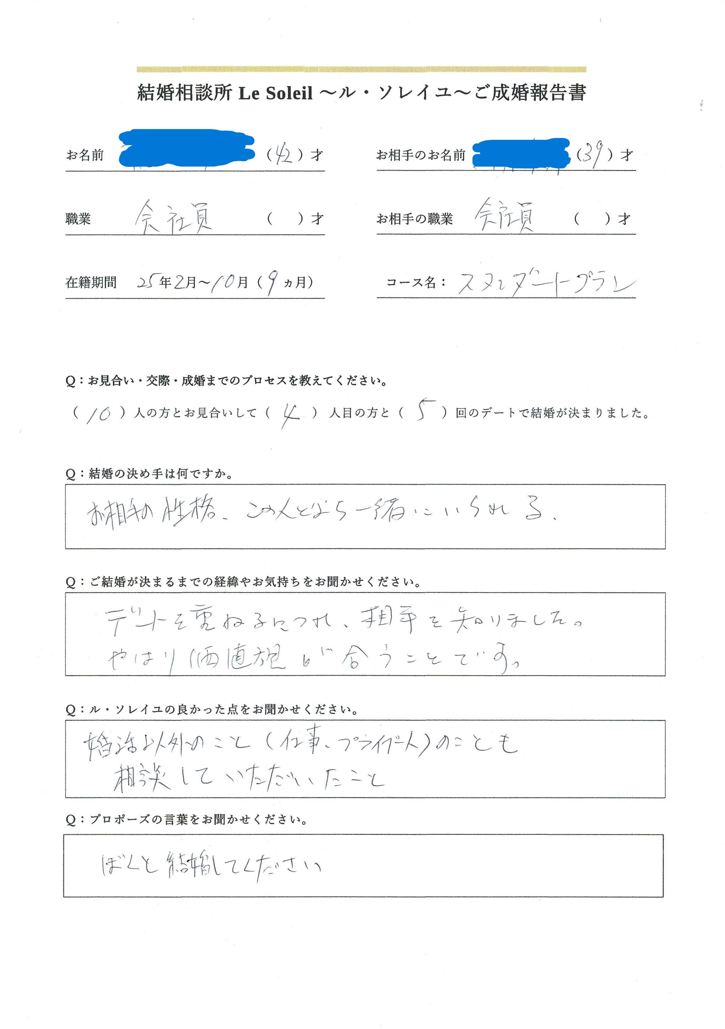 42歳会社員男性 K.Aさん ✕ 39歳会社員女性 M.Kさんのご成婚